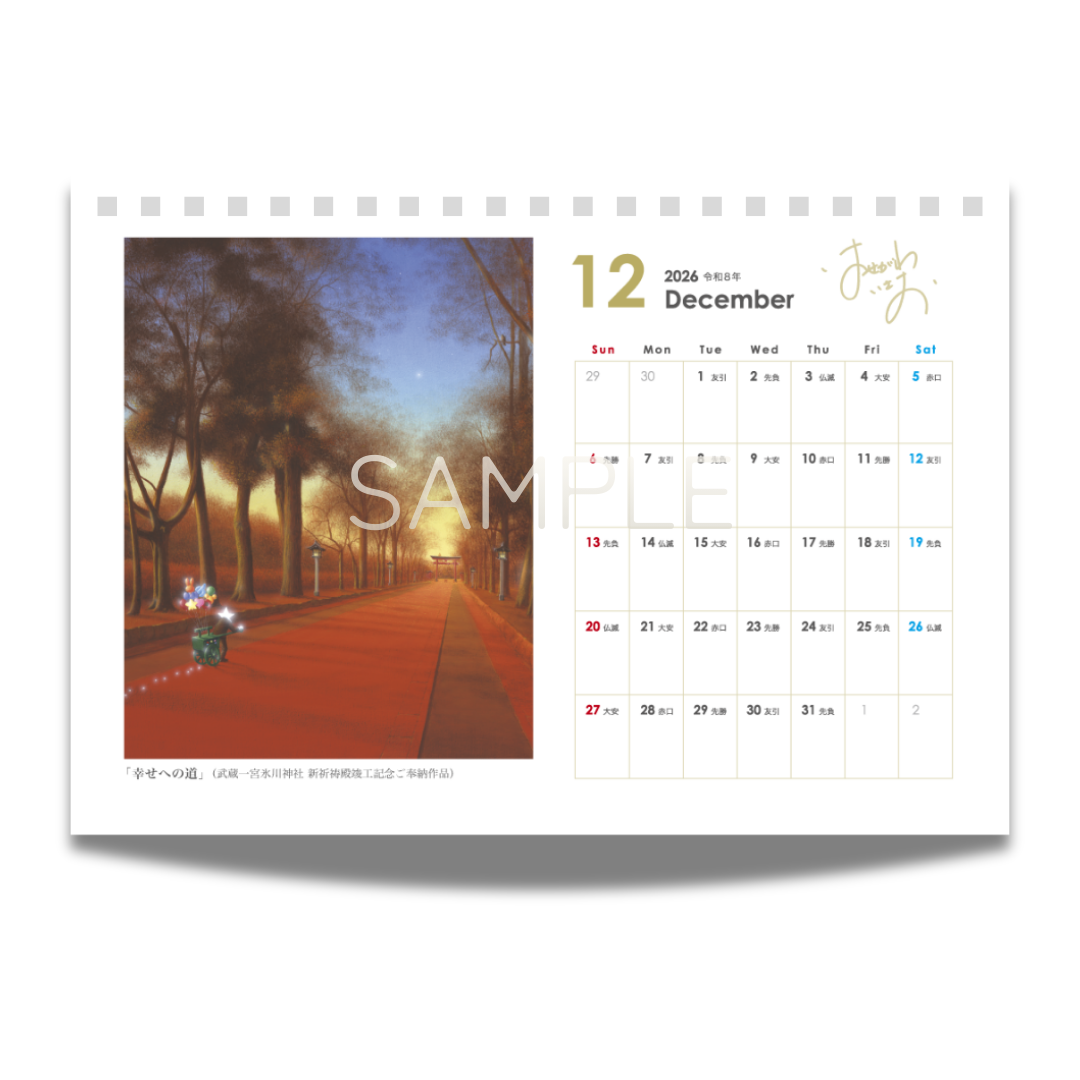 その祈りの循環を見守ってくださった武蔵一宮氷川神社と大成山普門院、二つの場所の作品も、今年のカレンダーに収録しています。